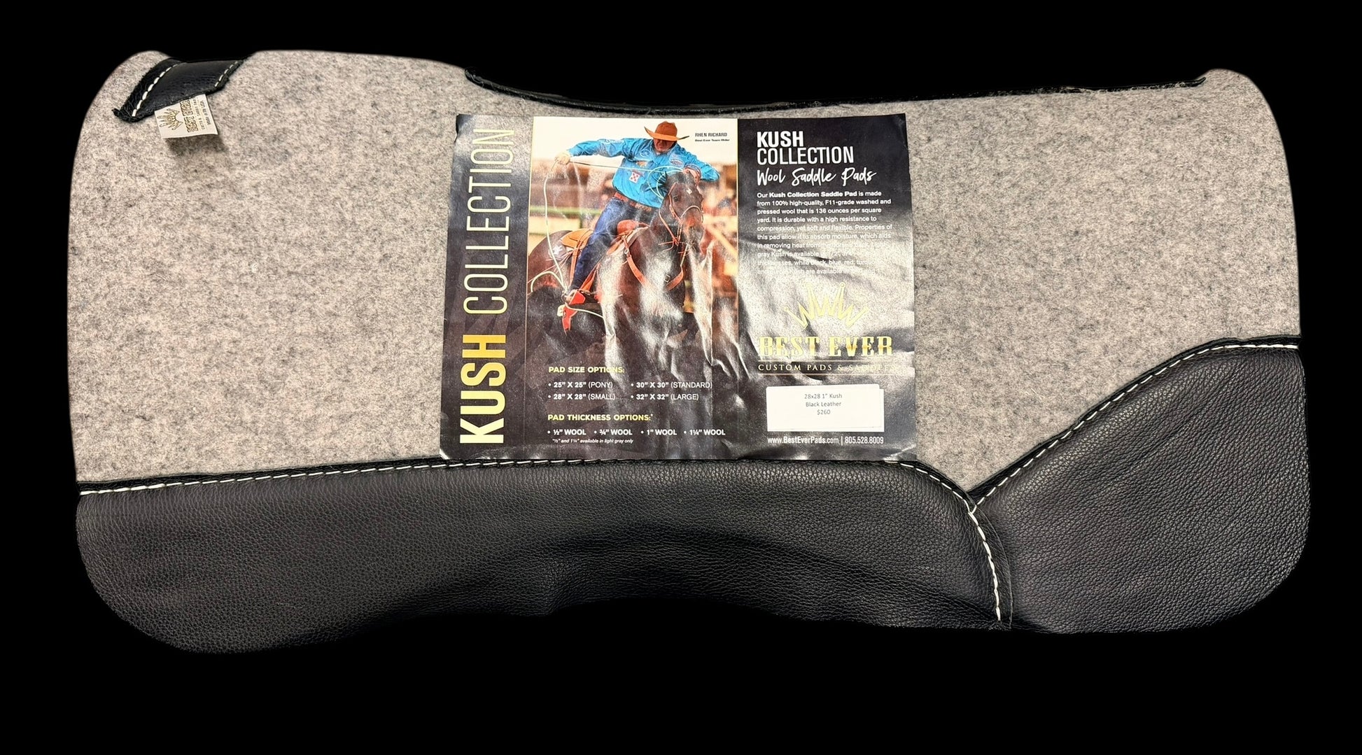 28X28" 1" Kush Black Leather Best Ever Saddle Pad