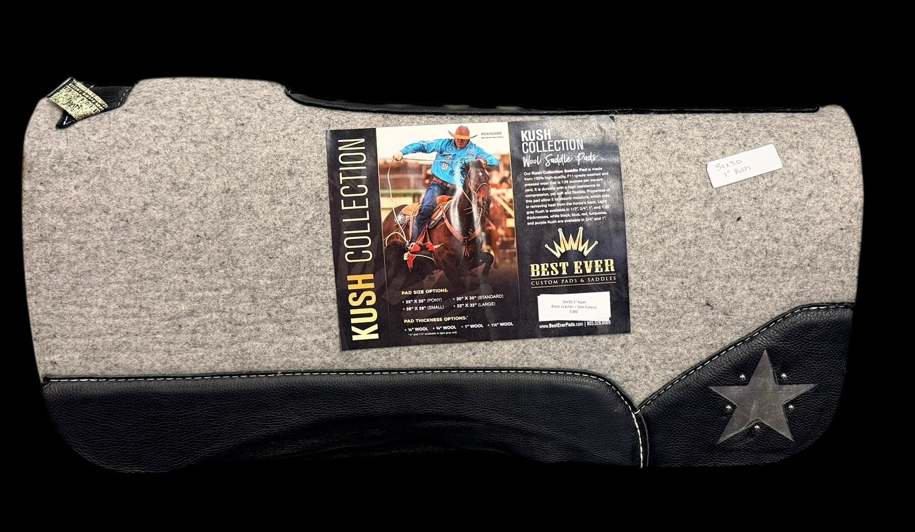 30X30" 1" Kush Black Leather Star Cutout Best Ever Saddle Pad