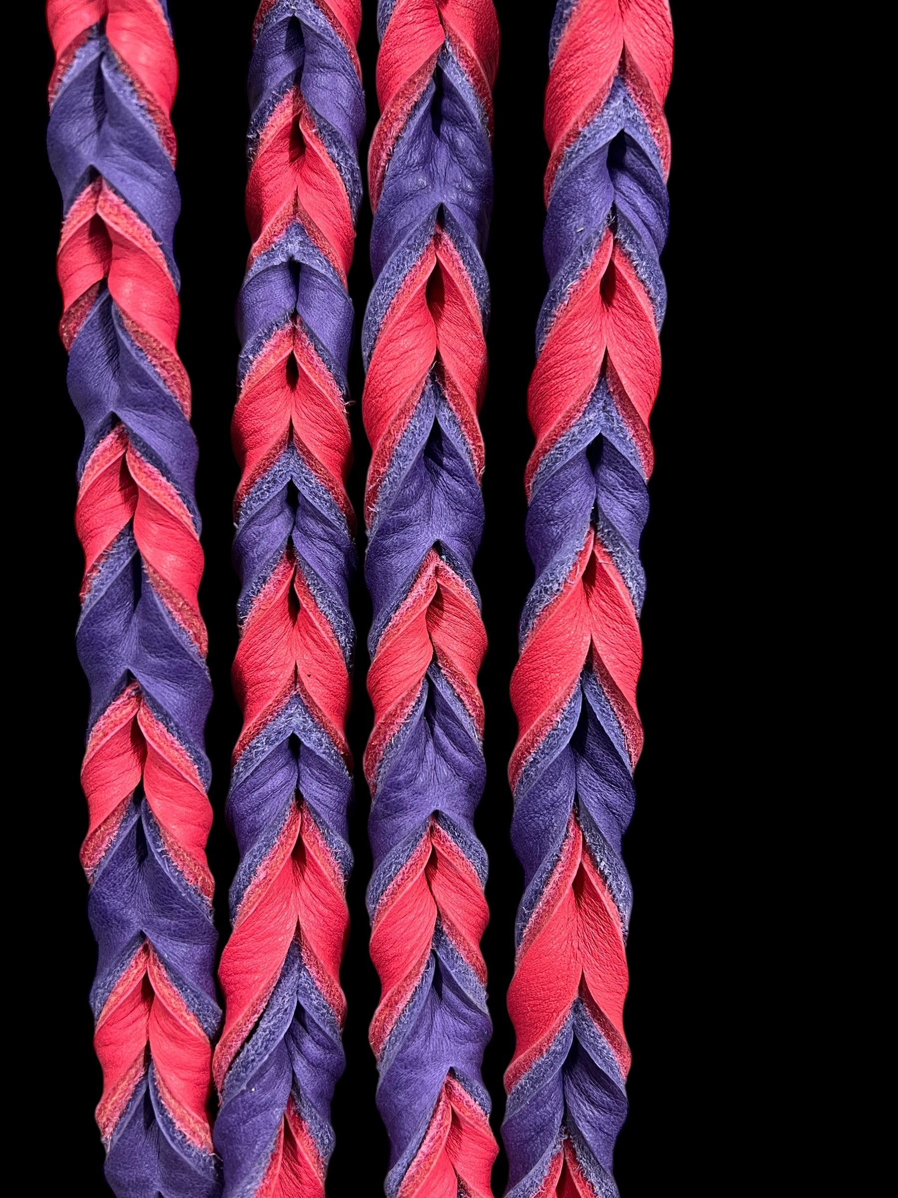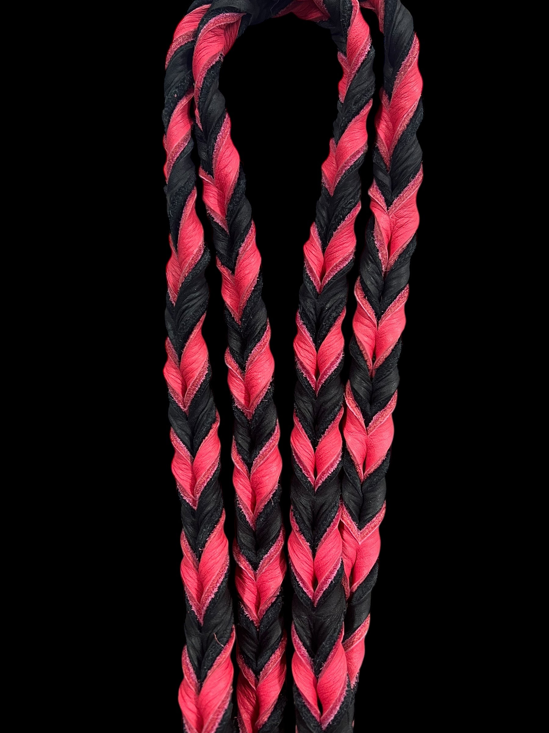 These one piece leather reins offer great grip for speed events and a soft feel for everyday use. They come in plenty of color combinations, and can be custom ordered in any combination of one or two colors.