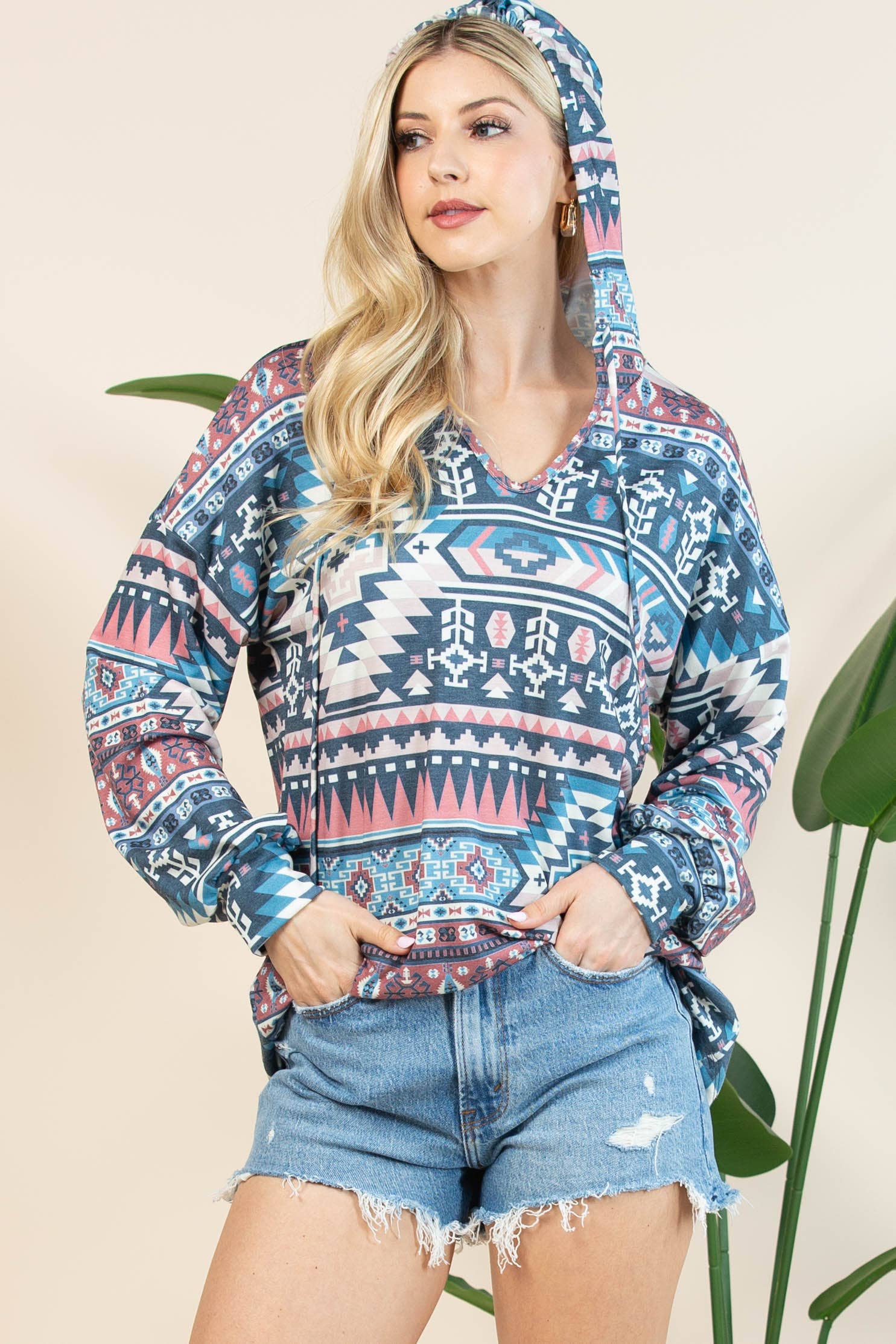ELOISE AZTEC PRINT RELAXED FIT HOODIE