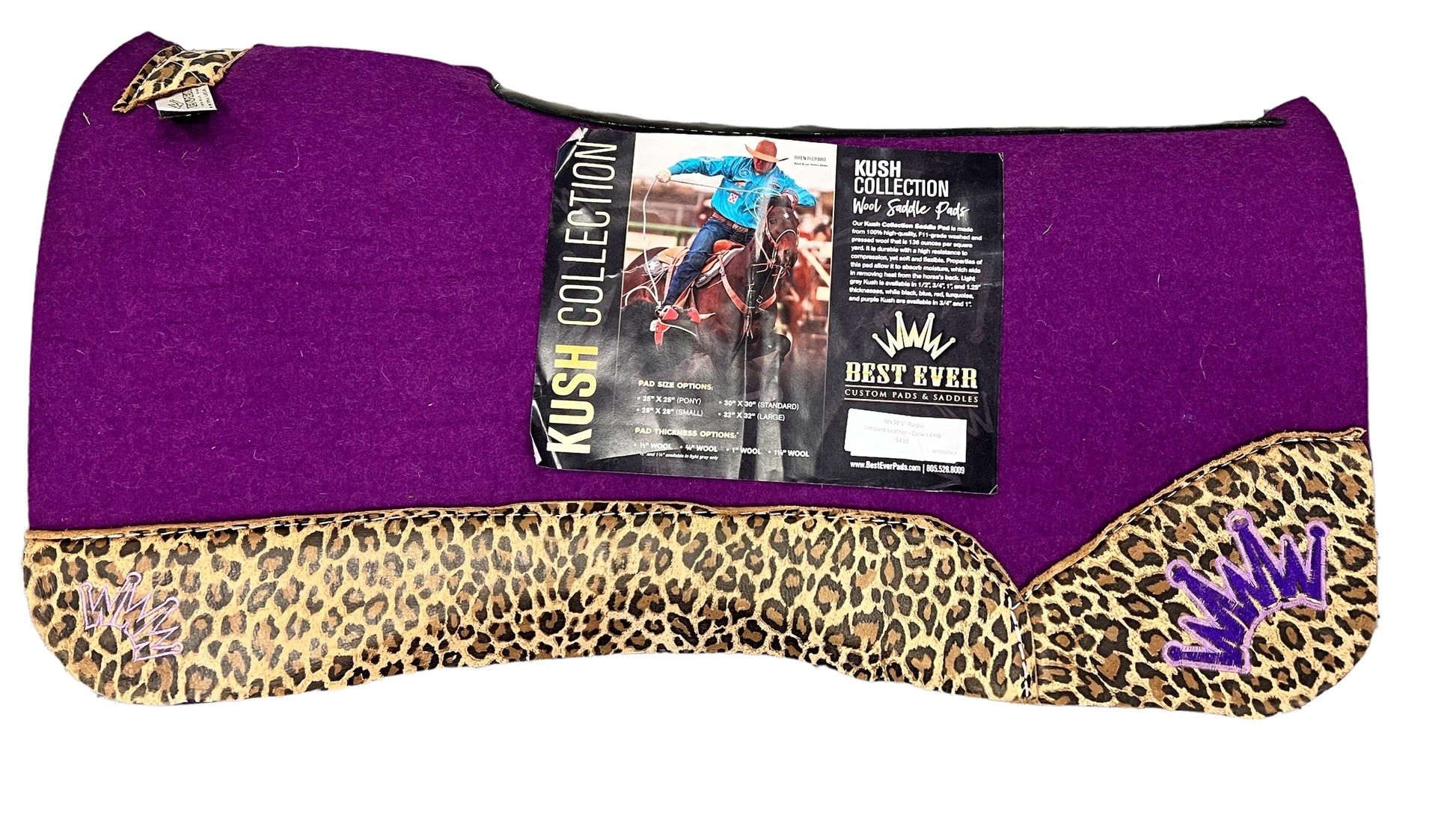 Kush 1" 30"x30" Purple Wool Leopard leather with Crown Emb Best EVer