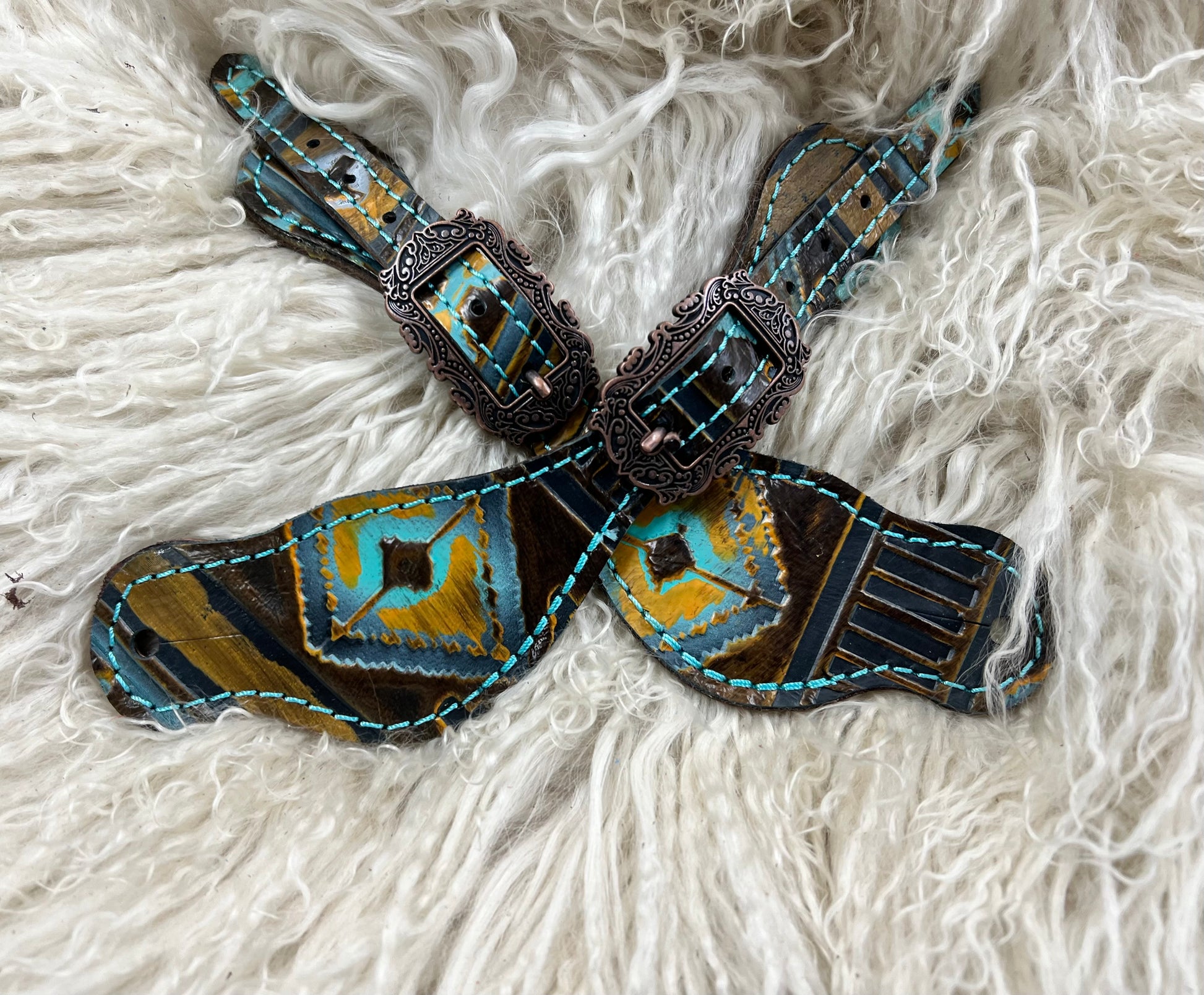 Mocca and mint Navajo on dark leather