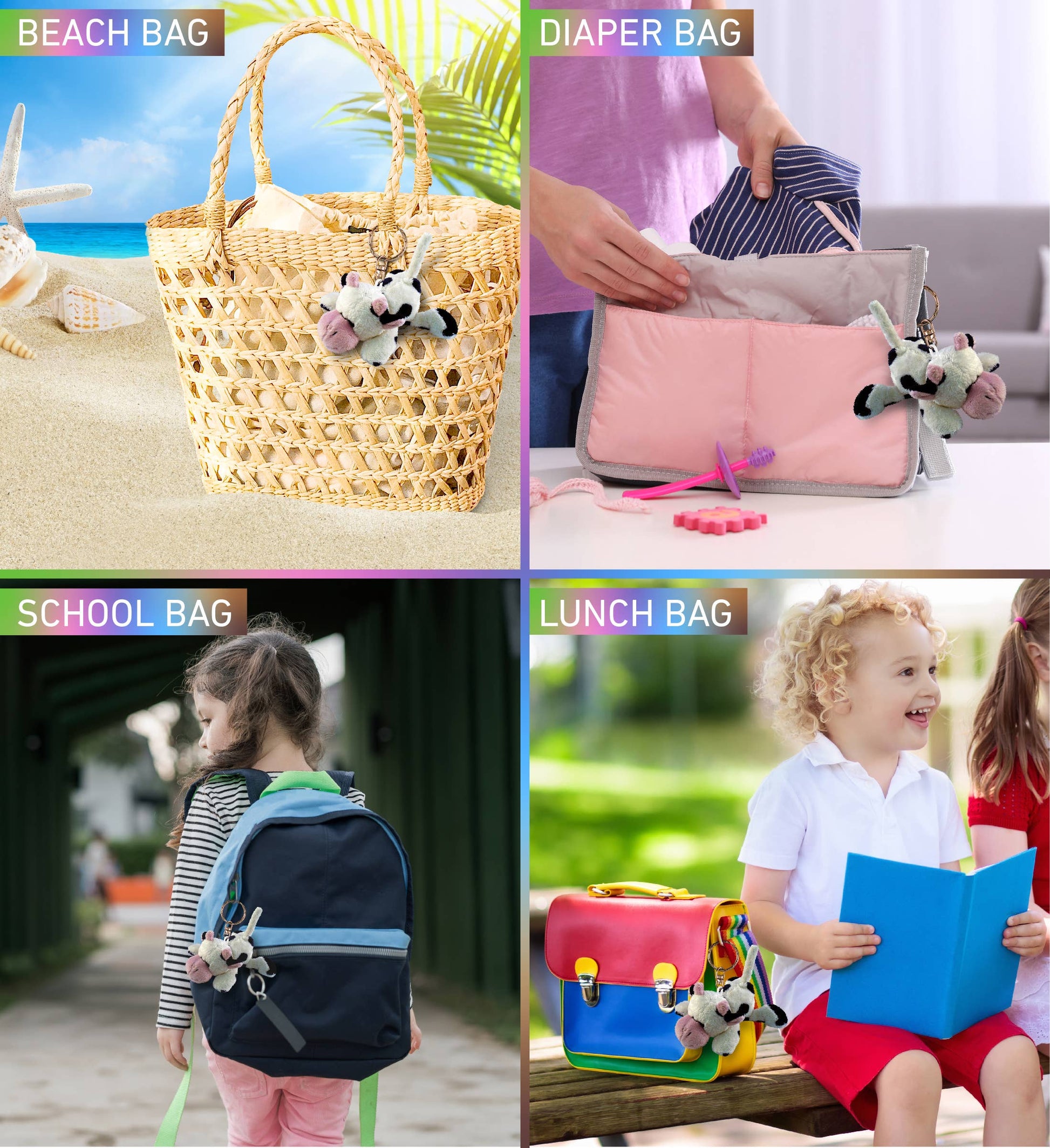 Puzzled Cow Plush Keychain Stuffed Animal Toy - Soft Fur Farm Life Animal White Cow Charm Keyring, Cute Decorative Plush Toy Accessory Fun Buddy For Kids Bag, Purse, Backpack, Handbag - 4 Inches
