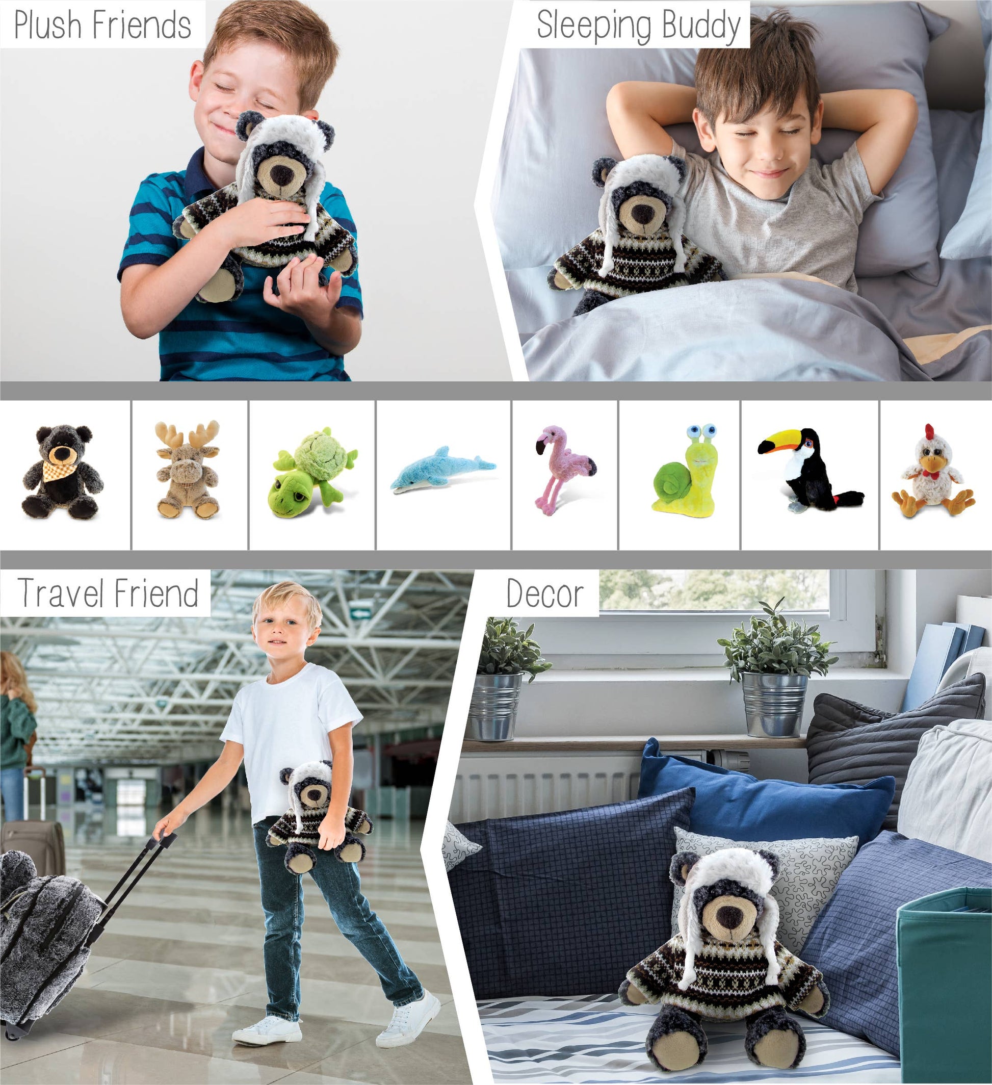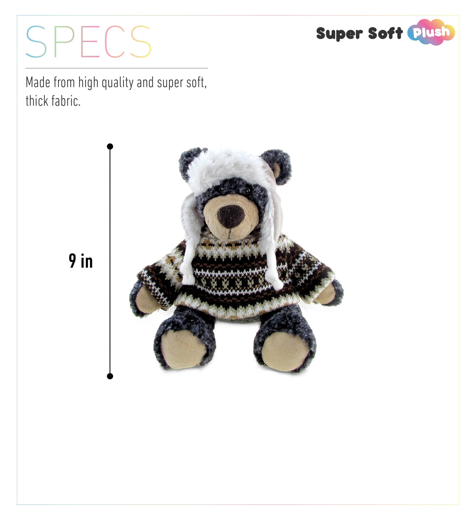 DolliBu Plush Black Bear Stuffed Animal - Soft Huggable Black Bear Wearing Hat Sweater, Adorable Teddy Bear Plush Toy, Cute Wildlife Cuddle Gift, Super Soft Animal Toy for Kids Adults - 9 Inches