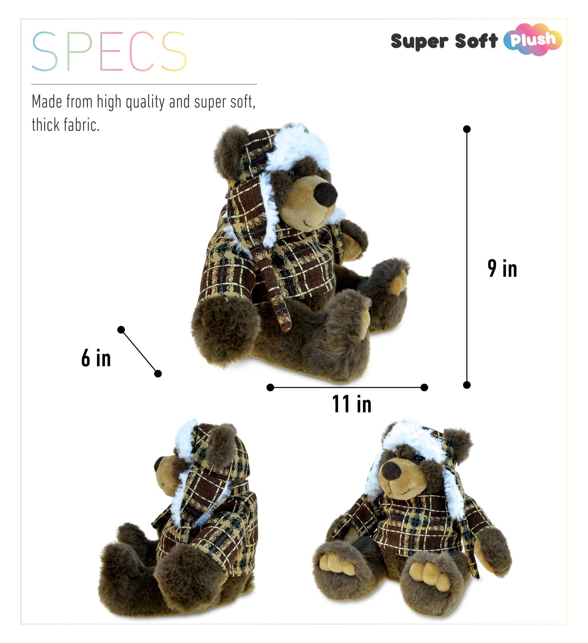 DolliBu Plush Brown Bear Stuffed Animal - Soft Fur Huggable Sitting Brown Bear Wearing Hat Sweater, Adorable Plush Toy Wild Life Cuddle Gifts, Super Soft Animal Toy for Kids Adults - 11 Inches